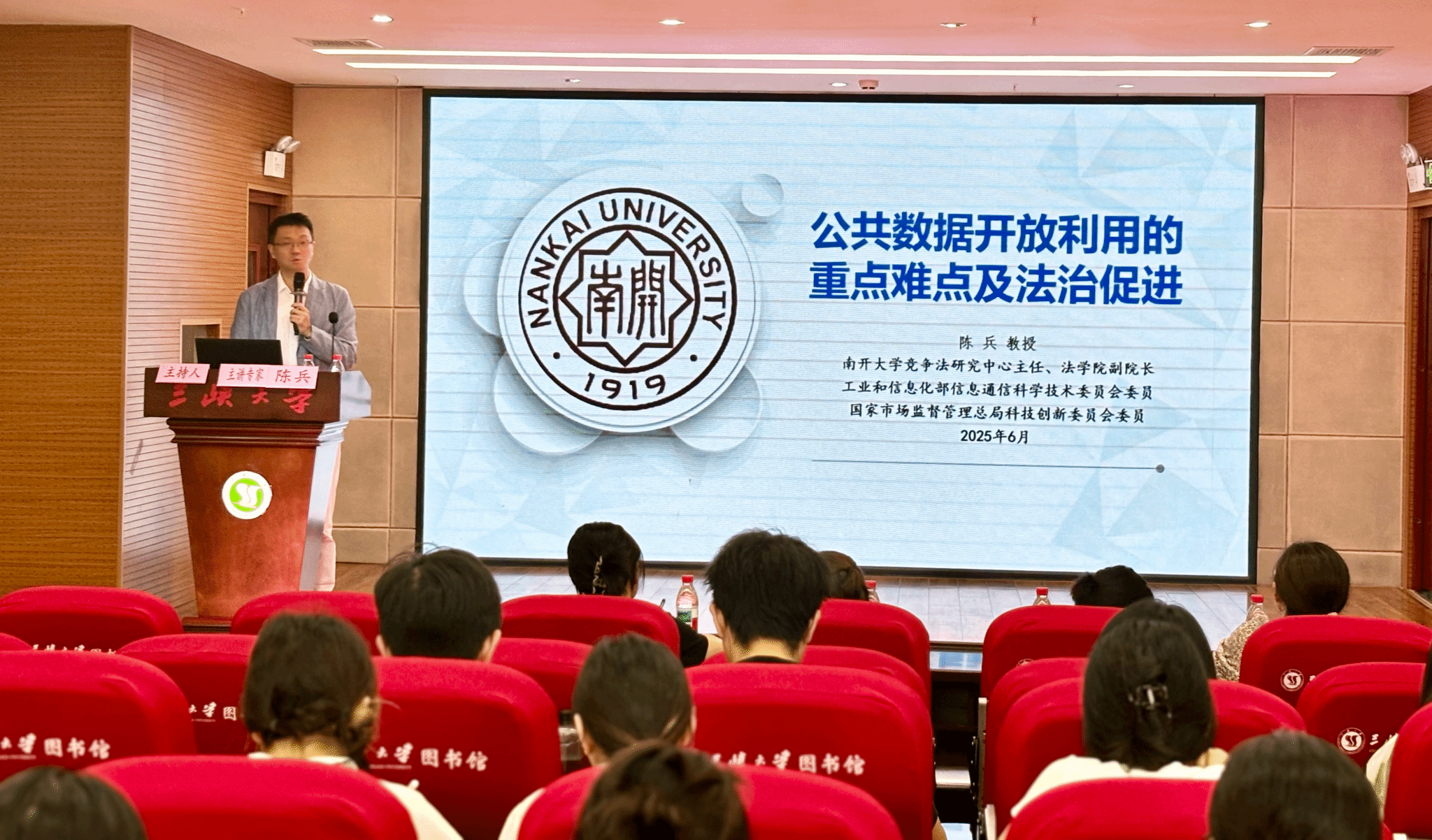 本网讯(通讯员 张思晴)6月16日,南开大学竞争法研究中心主任、法学院副院长陈兵教授应邀为我院师生作了题为《公共数据开放利用的重点难点及法治促进》的精彩学术报告。此次报告会在图书馆昭君报告厅举行,学院百余名师生共同参与聆听。报告会由我院副院长黄利红教授主持。
