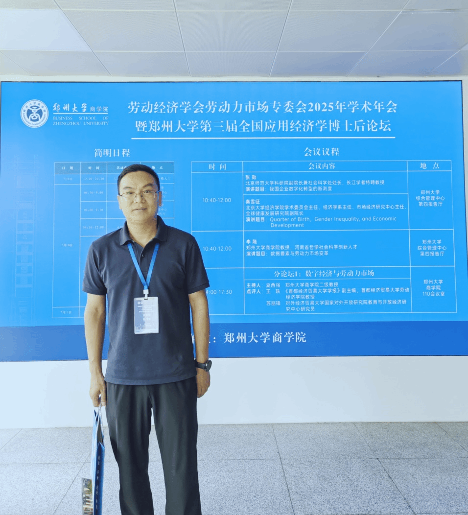 7月10日,中国劳动经济学会劳动力市场专委会2025年学术年会暨第三届全国应用经济学博士后论坛在郑州大学商学院如期举行,论坛以“中国劳动力市场变革与发展新趋势”为主题,来自中央党校(国家行政学院)、北京大学、浙江大学、北京师范大学、对外经济贸易大学、三峡大学等20余所高校和科研院所的80余名专家、博士后、研究生等参加。学院副院长、劳动力市场专委会理事石丹淅受邀参会。会议分开幕式、主旨演讲、平行论坛及闭幕式等单元。其中,在主旨演讲部分,原中国人事科学研究院院长余兴安、山东女子学院党委副书记、校长李光红、中央党校(国家行政学院)教授赖德胜、北京师范大学财经处处长蔡宏波、北京师范大学科研院副院长兼社会科学处处长张勋、北京大学经济学院学术委员会主任秦雪征、郑州大学商学院教授李飚依次作“劳动组合形态的嬗变与管理体系的重构”“高校专业布局与就业——以山东省属高校为例”“关于就业质量的几点思考”“数字经济的空间效应”“我国企业数字化转型的新测度”“Quarter of Birth, Gender Inequality, and Economic Development”“数据要素与劳动力市场变革”学术报告。在平行论坛部分,石丹淅在“平行论坛1:数字经济与劳动力市场”作题为“数字经济驱动高质量充分就业的实现机制与政策路径”学术汇报,并担任“平行论坛4:就业质量与劳动力市场政策”点评人。本次论坛是国内劳动经济学领域新进学术成果的及时分享与思想交流,参加此次论坛有利促进我院公共管理学科建设的深化与科研水平的提升。