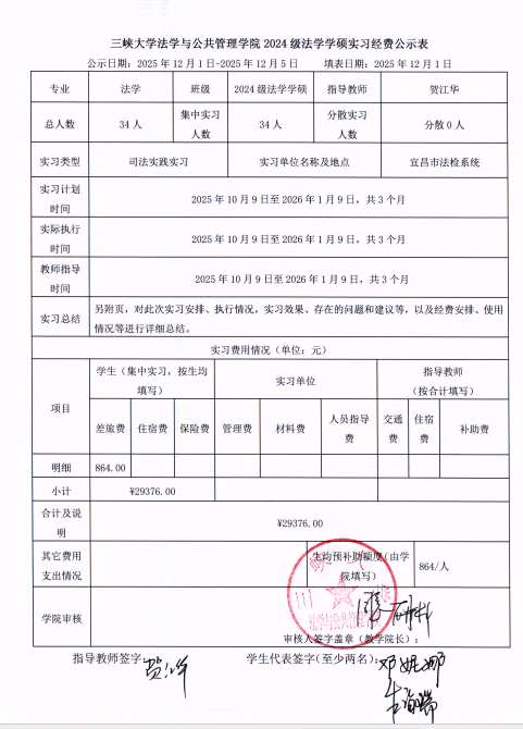 现将2024级研究生法学专业实习经费予以公示,公示期2025年12月1日-2025年12月5日,如有异议,请在公示期内以书面意见形式反馈至学院科研办。