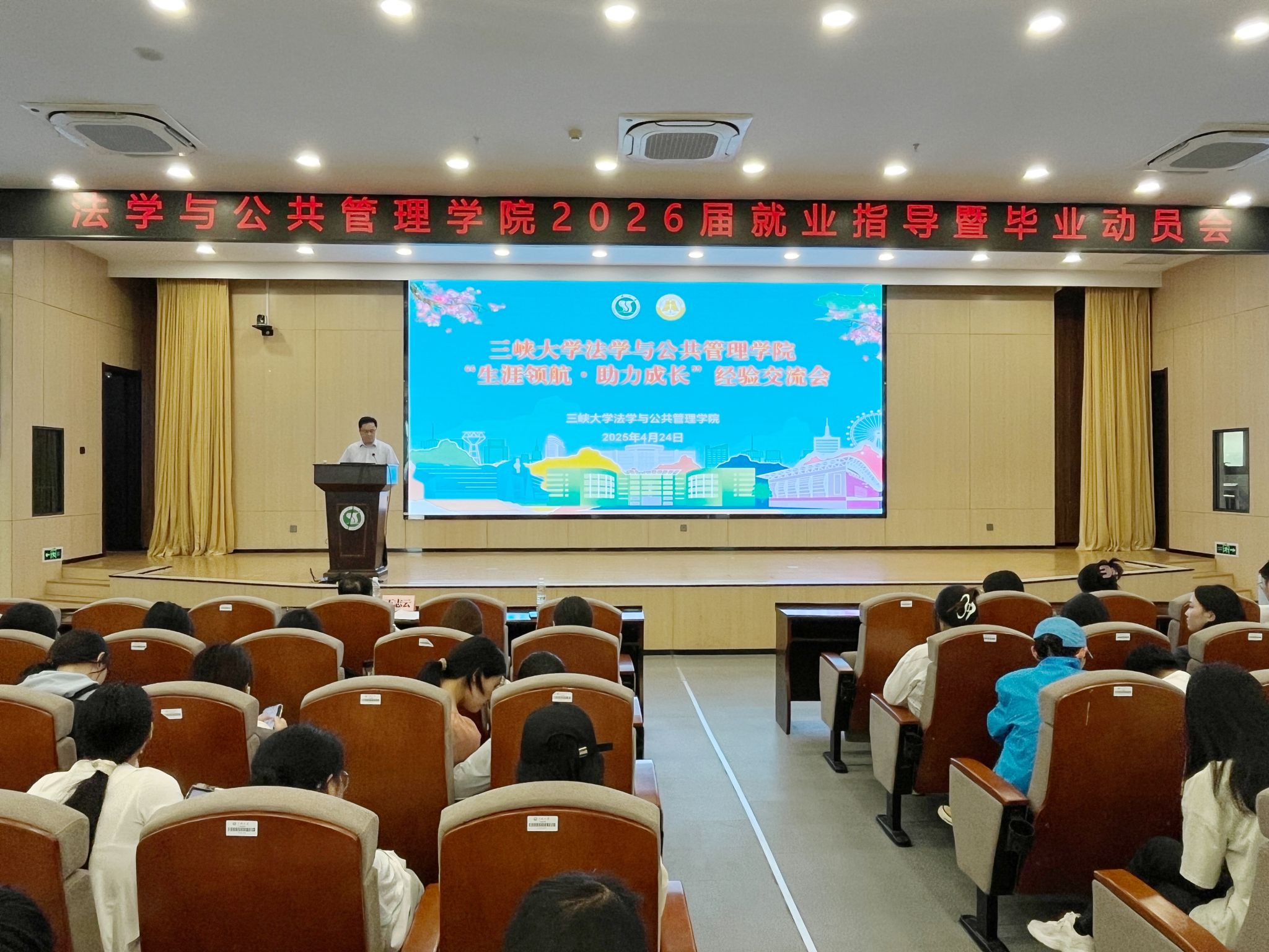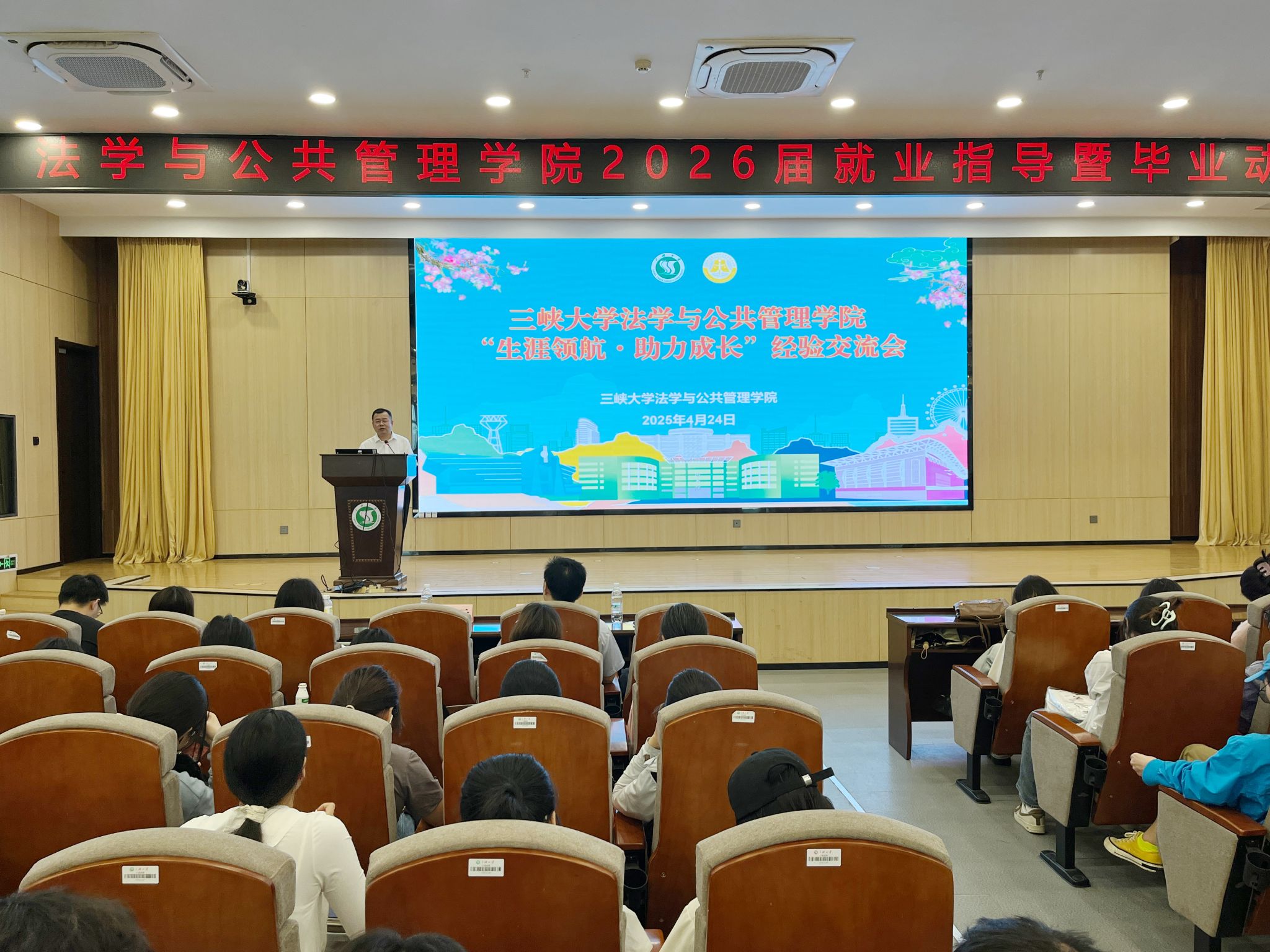 (通讯员 石雨生)为积极响应国家高校毕业生就业工作相关政策,切实推动毕业生高质量充分就业。4 月 24 日下午3时,学院在长江报告厅举办 2026 届毕业生就业指导暨毕业动员大会。此次大会特邀宜昌市中级人民法院党组成员、政治部主任王志云担任主讲嘉宾,为 300 余名 2026 届毕业生带来了一堂极具深度与实用的 “就业指导” 思政课。学院学工办全体辅导员参加,会议由学院院长骆东平主持。