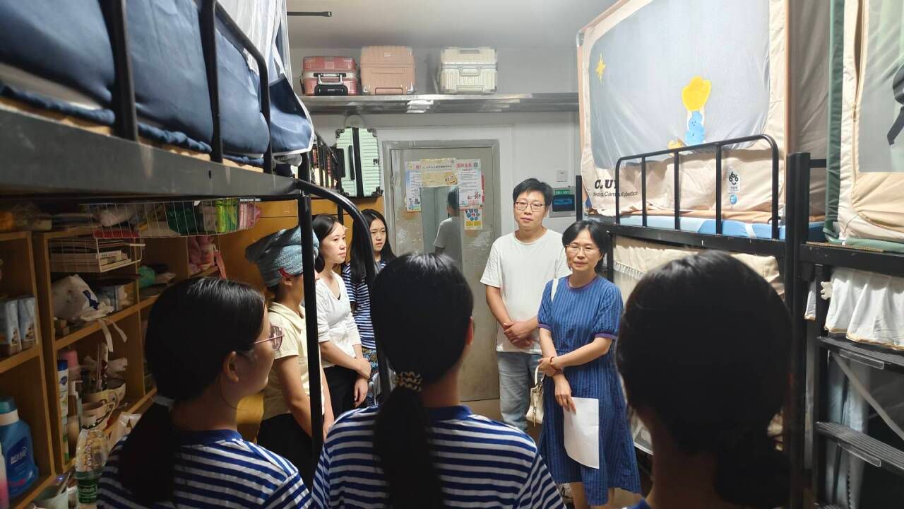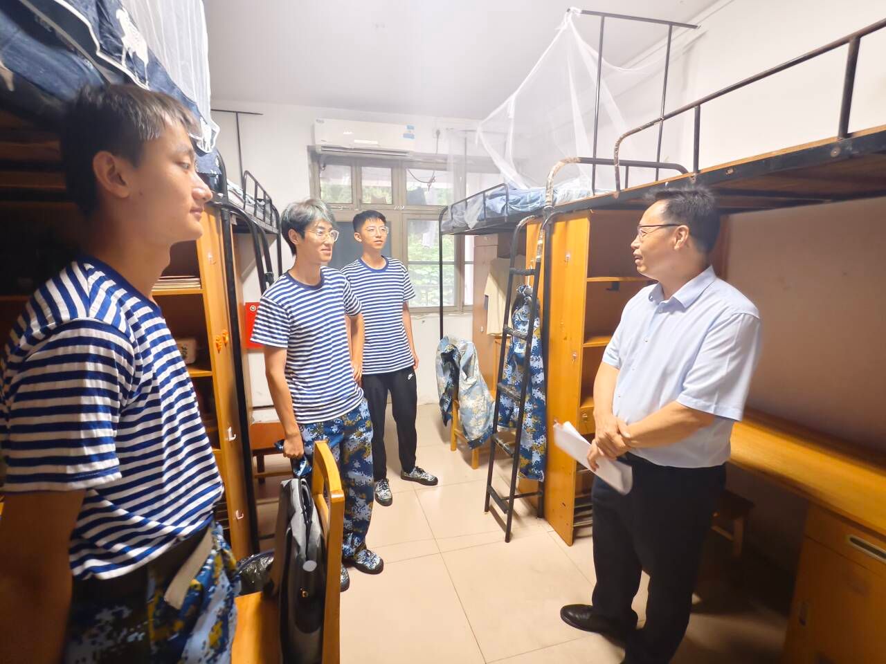 每到一间寝室,院领导都详细询问新生们的住宿环境是否习惯、饮食是否适应,同时仔细查看了寝室的床铺设施、水电供应、通风采光等情况。