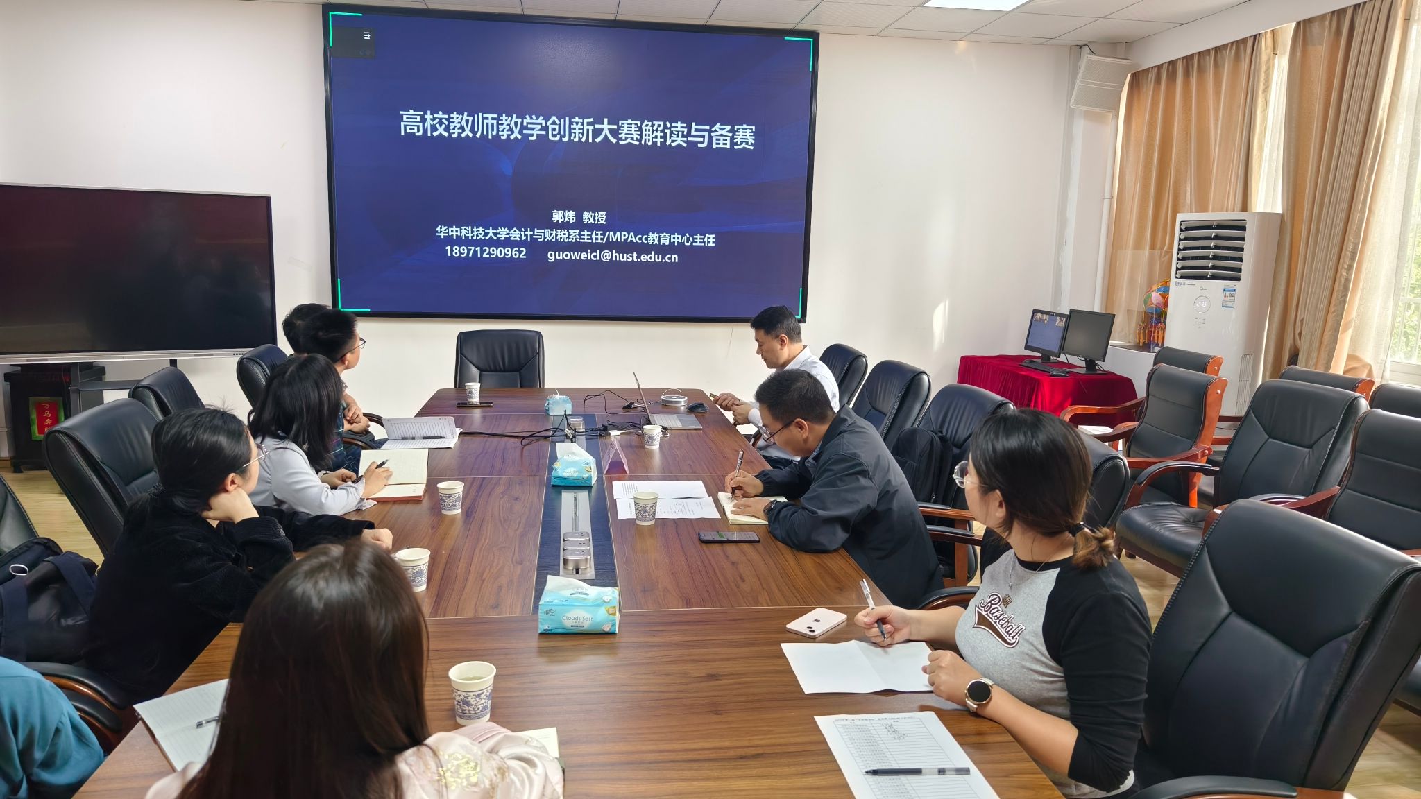 10月16日下午,由法学与公共管理学院主办的第十一期“名师指导坊”系列讲座在W-1207成功举行。第四届全国高校教师教学创新大赛二等奖获得者、华中科技大学管理学院教授郭炜为我院教师做了主题为“高校教师教学创新大赛解读与备赛”的专题讲座。讲座由副院长石丹淅主持。