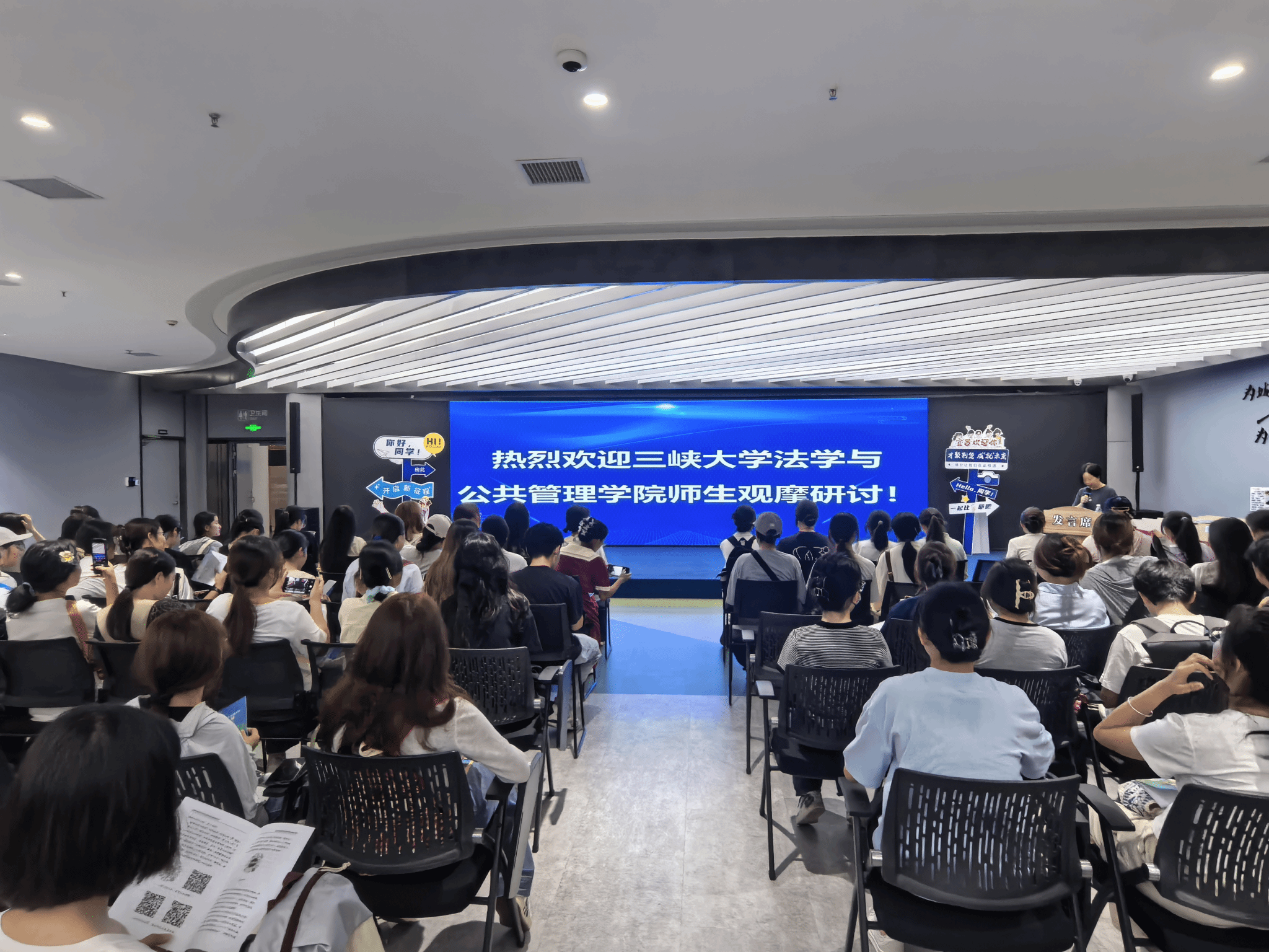 首站抵达宜昌市市民之家,深入感受数字技术为城市治理带来的变革与创新。在工作人员的讲解下,同学们亲眼目睹大数据、人工智能等前沿技术如何优化政务服务流程、提升城市管理效率,深刻认识到数字赋能在城市治理中的重要作用,对智慧城市建设有了更为直观且深入的理解。此外,就宜昌市青年人才政策和就业政策进行了详细介绍,提升了师生对宜昌打造青年发展型城市的认识。