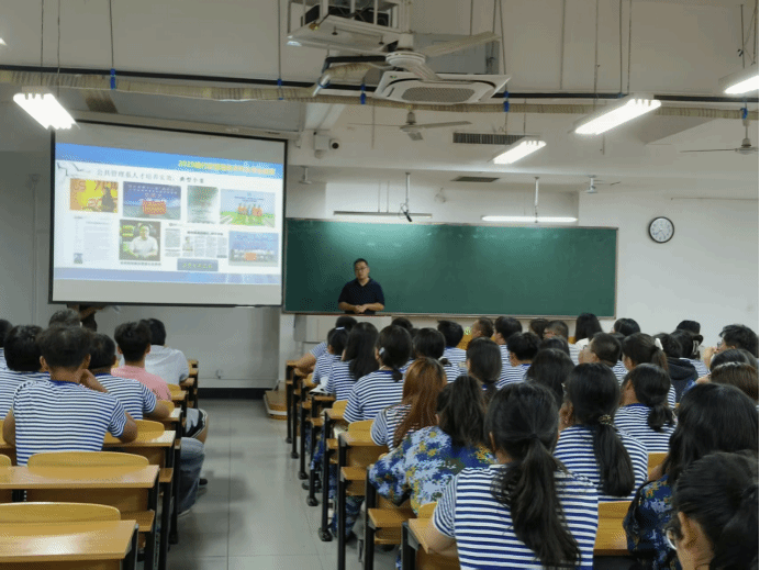 (通讯员 邵璧婉)9月19日晚,法学与公共管理学院行政管理专业2025级新生入学教育大会在J3402举行。院行政管理系主任张园、副主任许龙飞,25级新生班主任覃若兰、刘琼及资深教授李建顺出席,百余名新生到场聆听。大会由学院公考协会主席许天梓主持。